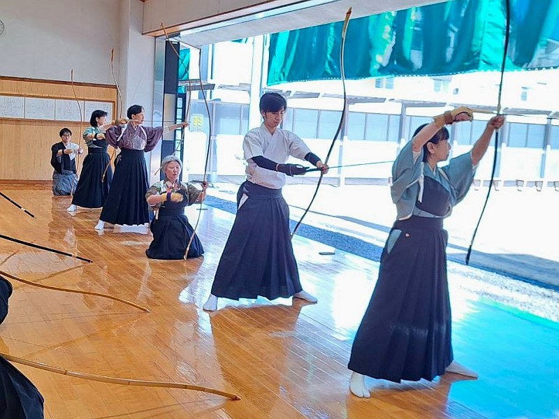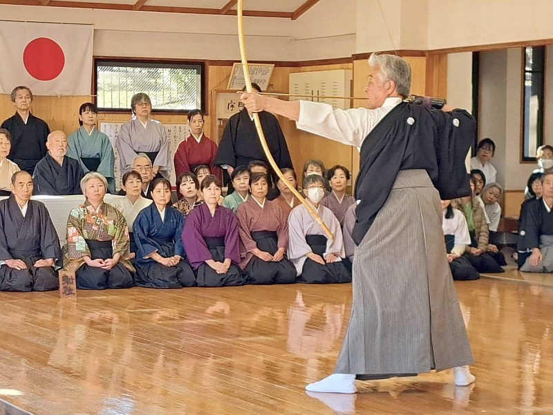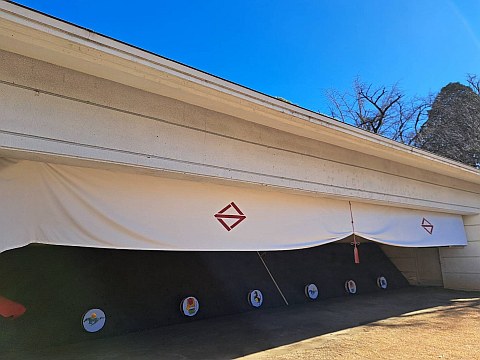 | 連休初日の抜けるような青空の下、横浜市弓道協会の新年射会が華やかに行われました。2025年の優秀団体賞が戸塚弓友会に贈られた後、伊藤会長の矢渡と一手祝射に続き、干支的、金的を狙って参加者60名が1本ずつ矢を射込みました。みごと的中したのは以下の方々です。 |